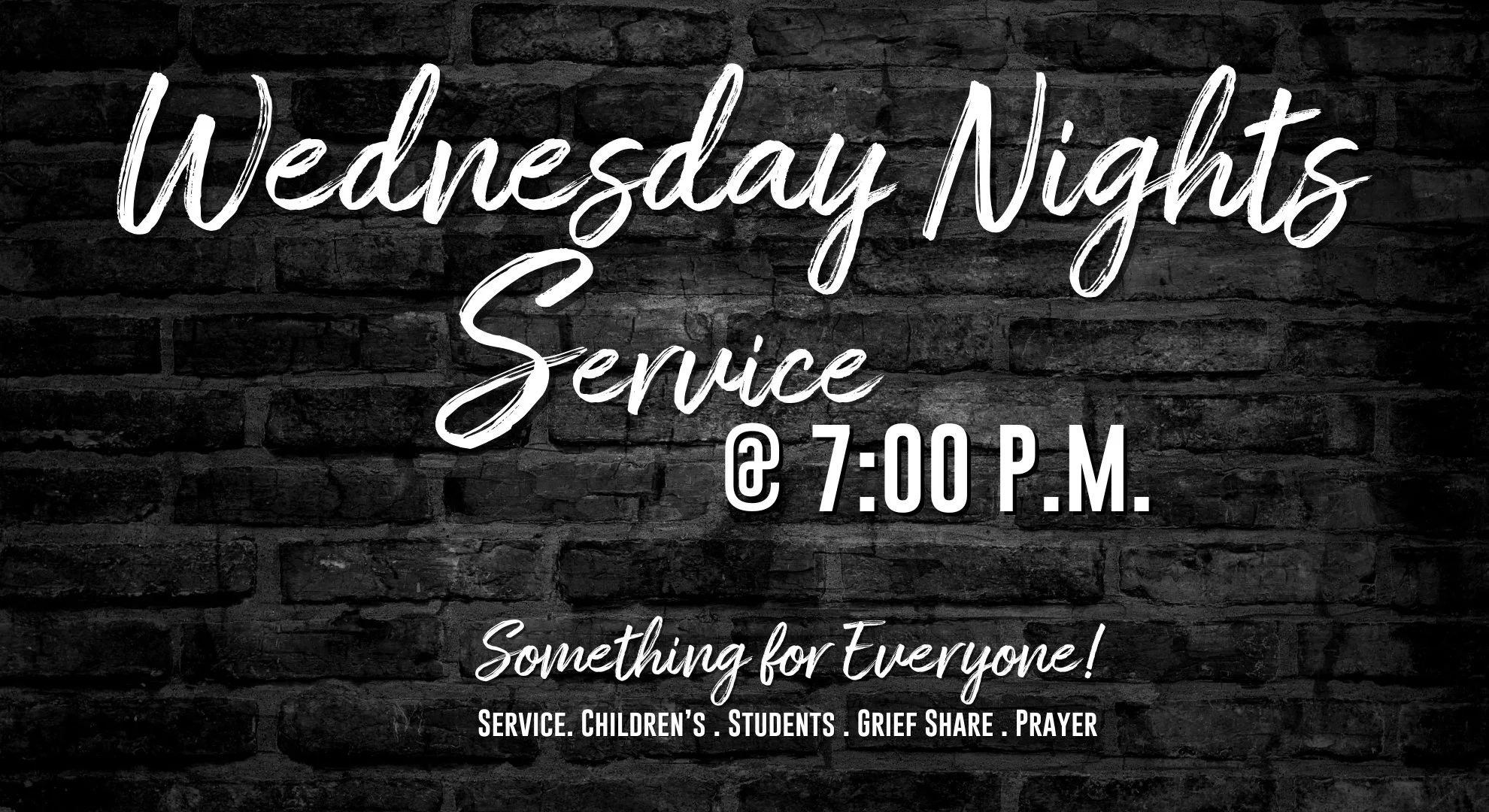 Join us on Wednesday Nights for Service at 7pm in the main sanctuary.